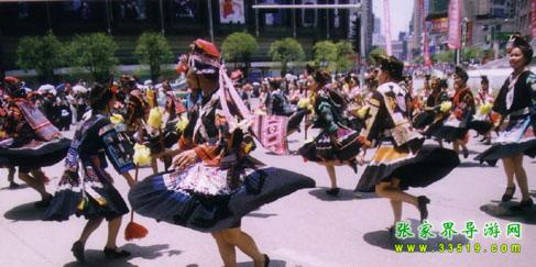 亞宜帶領(lǐng)眾人迎敵,戰(zhàn)斗了三天三夜,終因寡不敵眾向西撤退,得到貴州苗族支持,同官家周旋了一年。第二年四月八亞宜和貴州英雄亞努等人戰(zhàn)死在貴陽城。從那時(shí)起,“四月八”就成了青年男女聯(lián)歡節(jié)和祭祀英雄的紀(jì)念日。盡管歷代統(tǒng)治階級都以各種借口加以禁止,而具有反抗精神的苗族人民,只是改變了跳花的形式,仍然保留著聚會(huì)對歌內(nèi)容。一年一次,世代相傳,知道民國時(shí)期各地才先后中斷。后于一九八一年國家民委批示統(tǒng)一在京的苗族過“四月八”而才得到恢復(fù)。一九八六年在鳳凰上下落朝井鄉(xiāng)龍?zhí)梁哟澹?ldquo;四月八”的發(fā)源地舉行隆重聚會(huì)。這一天啟明星才掛在樹尖尖上的時(shí)候,湘黔邊境各地的男女青年,身著節(jié)日的盛裝,踏著路邊毛草上的露珠,唱著歌,吹著木葉,嘻嘻哈哈,迎著燦爛的朝露,從各條彎彎的山道上,向“跳花溝”涌來。十嶺八坡,山溝里外,龍河兩岸都站滿了人,熙熙攘攘,熱鬧非凡。會(huì)場的正中掛有寬六尺長七尺的淺紅大旗,繡有“四月八”三個(gè)大字,兩邊龍鳳圖案,莊嚴(yán)古樸,表示歷史悠久和不忘祖先功德。