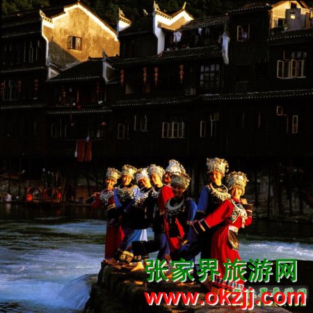 金鞭溪因流經(jīng)金鞭巖而得名,全長5710米,穿行于絕壁奇峰之間,溪谷有繁茂的植被,溪水四季清澈,被稱為“山水畫廊”、“人間仙境”。有詩贊曰:“清清流水青青山,山如畫屏人如仙,仙人若在畫中走,一步一望一重天”。途中你會看到點歌臺,那里有土家姑娘時刻準(zhǔn)備為游人唱民族歌曲,只要付十元錢她們就會為你引吭高歌,當(dāng)然,如果你不想花這個錢,也可以在一邊聽聽別人點的歌,聽完后走人。