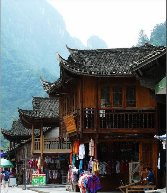 苗家素室勝繡戶,男耕女織人端勤。