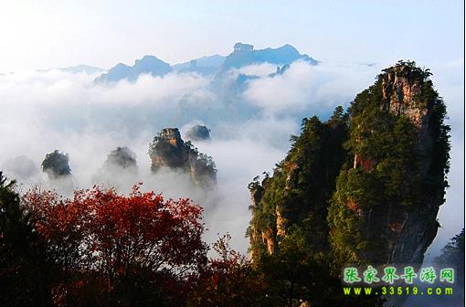 數(shù)以千計的奇峰怪石拔地而起森列谷中。在建筑師看來,石峰如塔、如柱、如屏、如樓、如堡、如墻,鱗次節(jié)比、錯落有致,展現(xiàn)了一幅宏偉的建筑藍(lán)圖;在藝術(shù)家看來,石峰似人、似佛、似鳥、似獸、似花、似樹,似瓊樓玉宇,生動逼真唯妙唯肖,似一幅彩色的畫卷;在軍事家看來,石峰是將、是兵,是鼓、是旗、是車、是馬,威武雄壯嚴(yán)陣待發(fā),象一支天降的軍隊。
