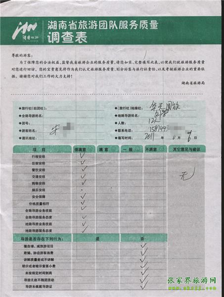 2011年6月6日宋先生一行12人旅游質(zhì)量反饋