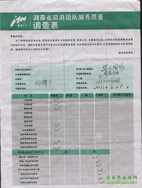 2011年6月2日劉先生一行4人旅游質量反饋