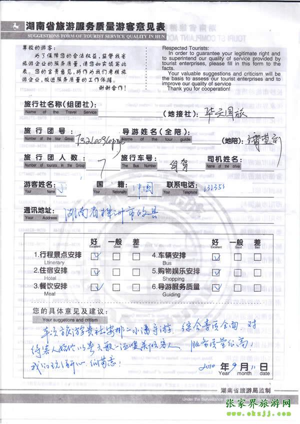 2009年湖南丁先生/女士說(shuō)導(dǎo)游素質(zhì)高,我們很開(kāi)心很滿意!