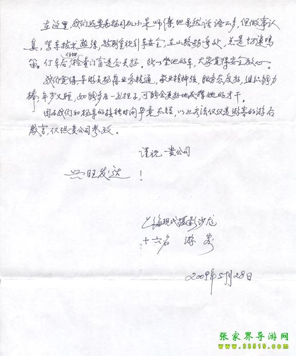 - 游客夏先生為表揚導游李姣姣寫來表揚信致我張家界... [14811]
