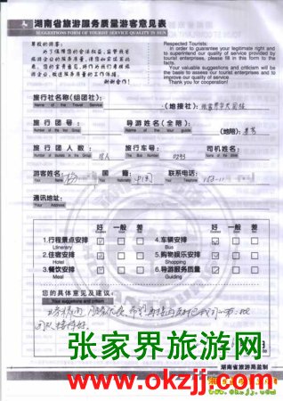 2010年6月12日梅先生一行18位旅游質(zhì)量反饋