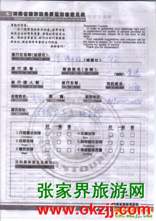 2010年4月5日河南李先生張家界旅游質(zhì)量反饋