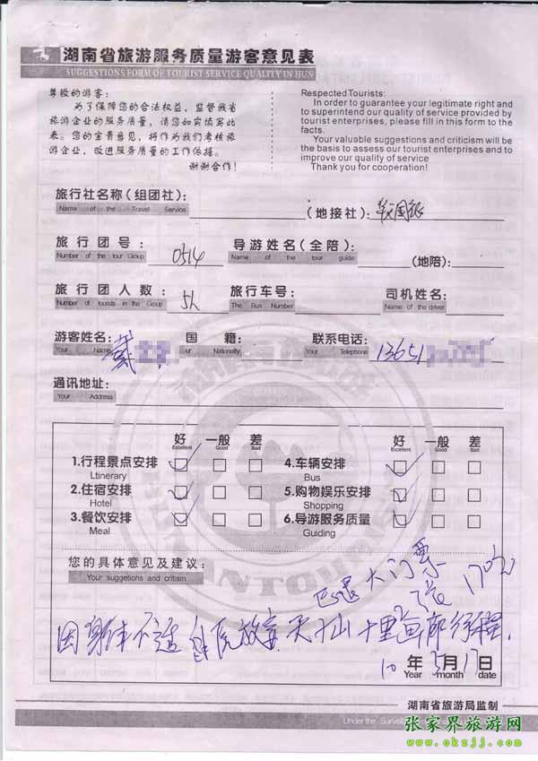 - 2011年10月5日張先生一行5人旅游質(zhì)量反饋 [8454]