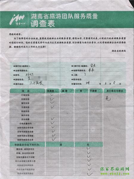 2011年6月8日吳小姐一行7人旅游質(zhì)量反饋