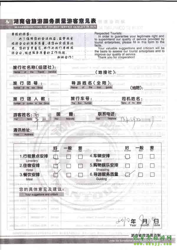 2010年9月14日覃先生旅游質量反饋