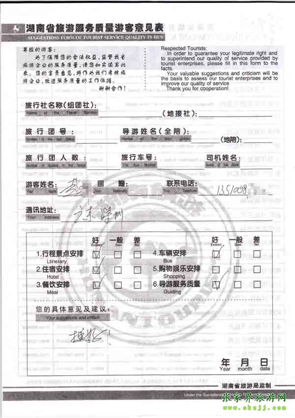 - 2011年10月26日張小姐一行18人旅游質(zhì)量反饋 [10482]