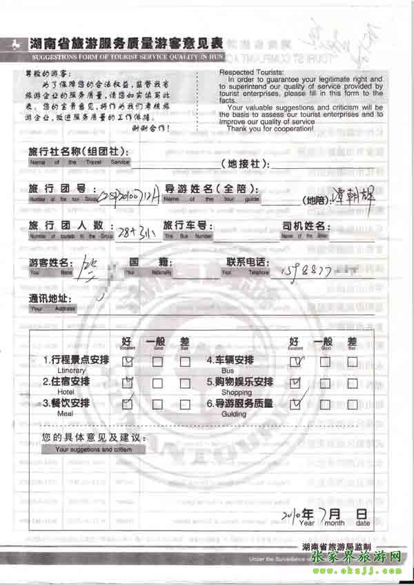 - 游客夏先生為表揚導(dǎo)游李姣姣寫來表揚信致我張家界... [14811]
