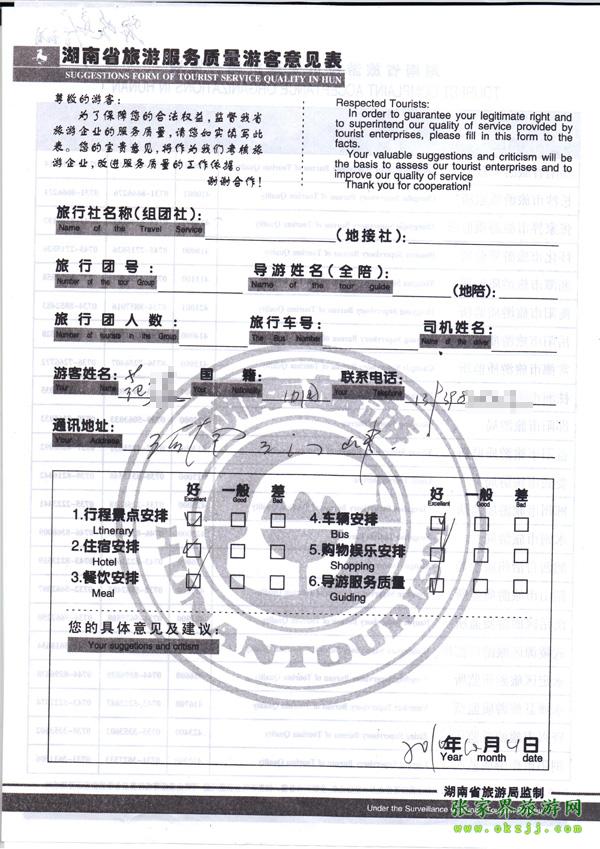 - 2011年10月26日張小姐一行18人旅游質(zhì)量反饋 [10482]