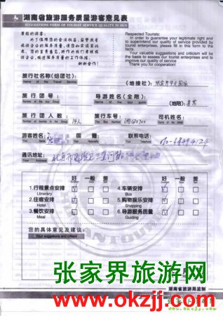 2010年6月26日北京張先生一行14位旅游質量反饋