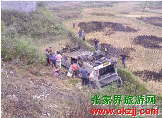 丈龍鼻嘴發(fā)生交通事故 09年9月16號下午,到古丈經(jīng)過的時候發(fā)生了一起重大交通事故.交警,消防,120都到達了,正在 展開救援,目前2死,N傷. 是一輛黑色吉普車緊急調頭,張家界的旅游大巴車速過快,沒剎住車,先是撞到路邊 的路桿,之后從變壓器旁邊沖了下去.! 這臺張家界旅游車(湘GY1133)在經(jīng)過古丈境內時發(fā)生翻車事故,目前已經(jīng)造成2人死亡,多人受傷, 尚不知道出事車上導游和司機生死情況,我們將繼續(xù)關注、提醒各位導游,一定要提醒師傅注意車速,安全行 車,不可因為一味趕時間忽略安全.