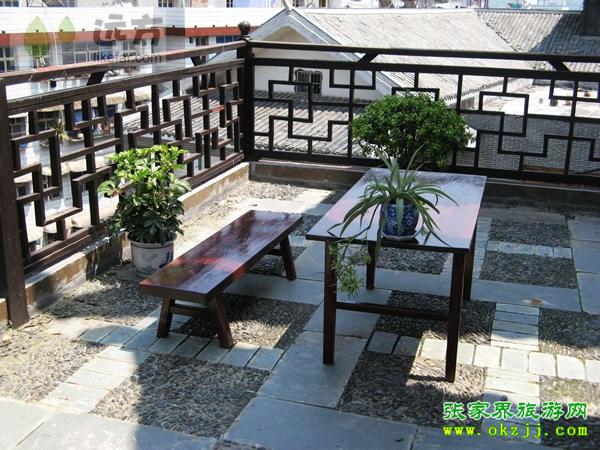 活動區(qū)域有兩個,一個是走廊活動區(qū),適合吹風、發(fā)呆,一個是屋頂陽臺活動區(qū),適合日光浴,陽臺上的盆景和花卉會映襯著天門山景!